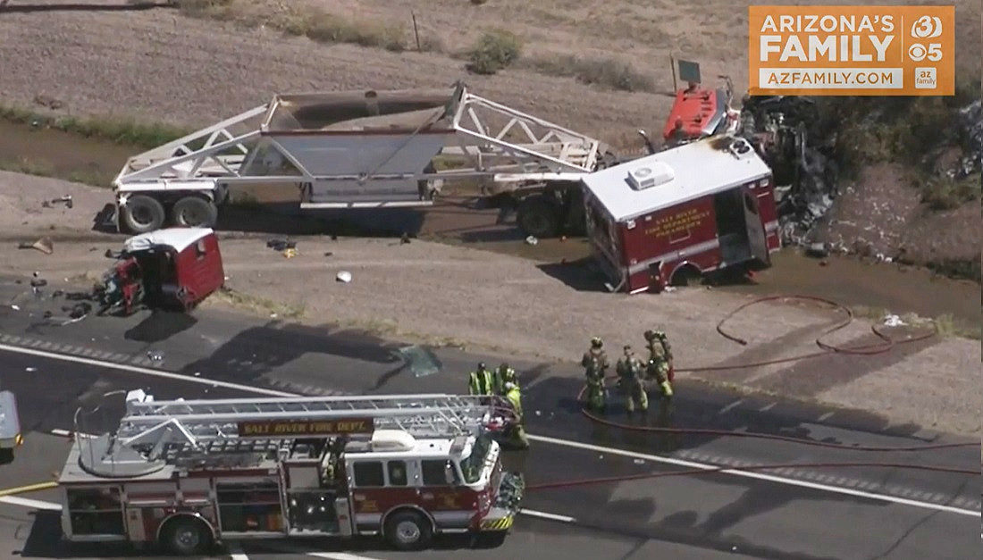Arizona Interstate Closed For Fatal Fiery Three Truck Crash